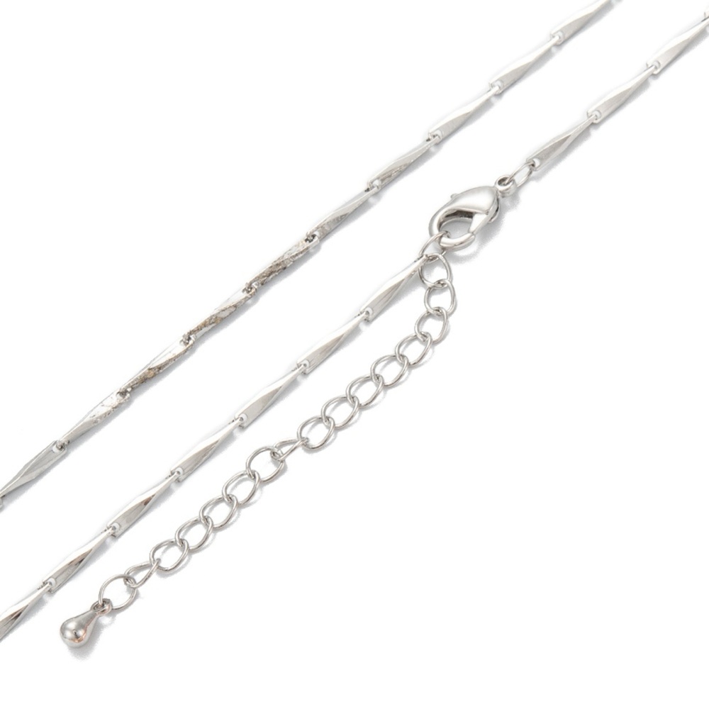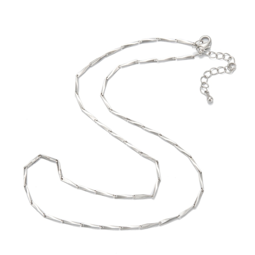 Cadena de eslabones de barra con broche langosta con extensión, chapada en platino