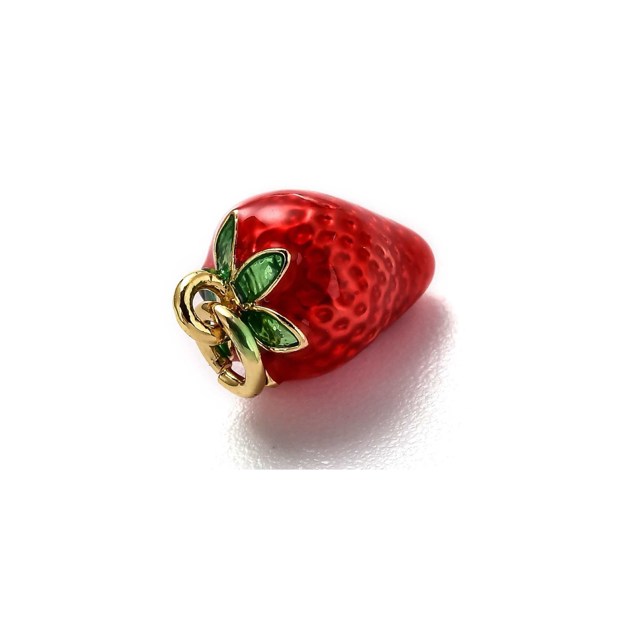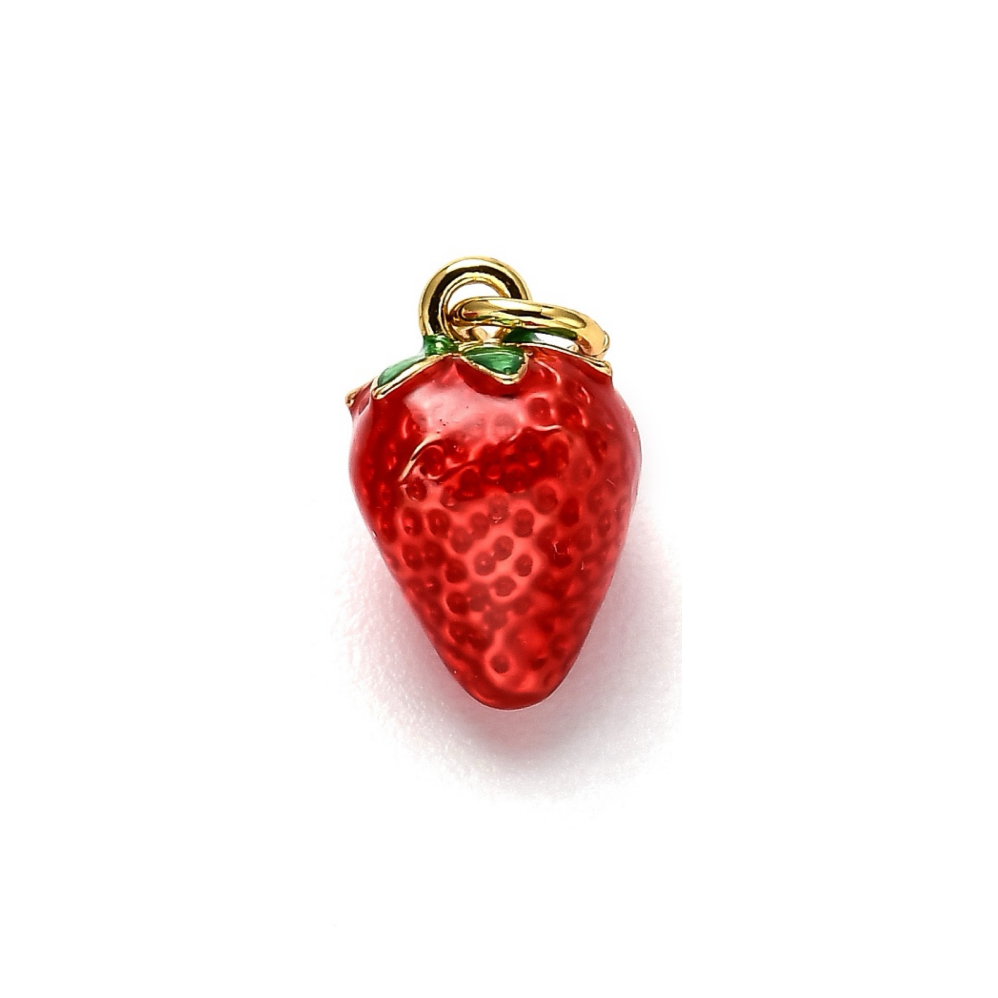 Charms frutilla esmaltadas, chapadas en oro 18k