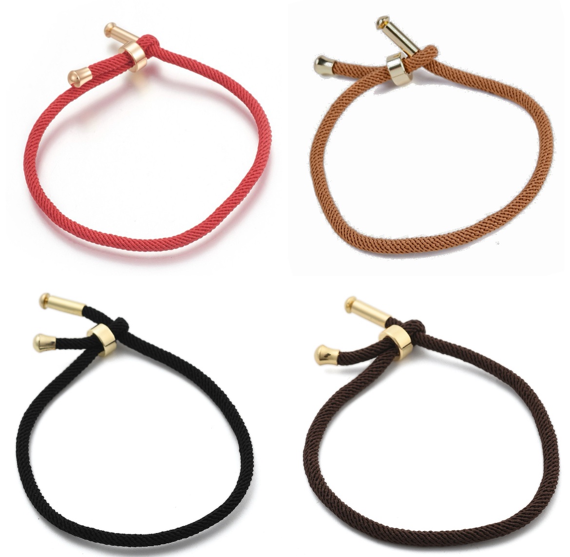 Pulsera de algodón con broches chapados en oro 18k